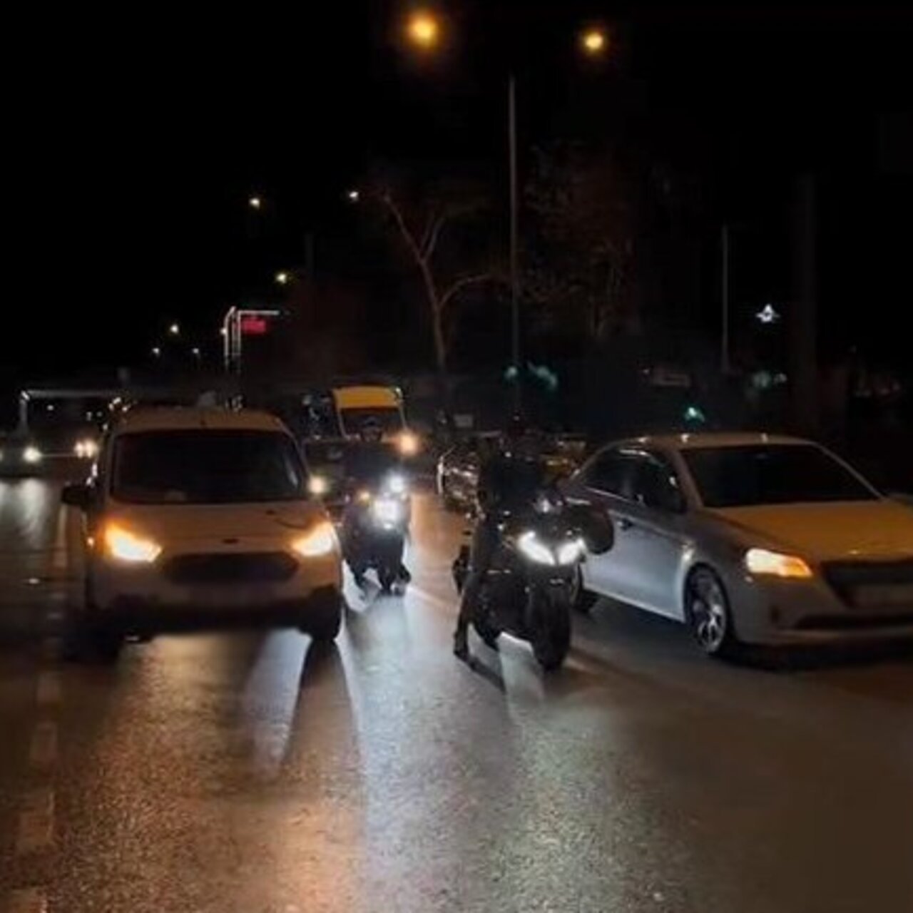 Araçlarıyla motosikletlilerin sağından ve solundan yavaş bir şekilde ilerleyen sürücüler, cep telefonu kamerasıyla kaydedildi.