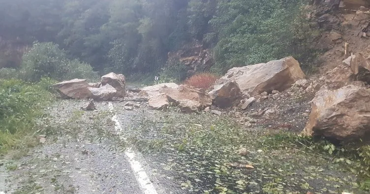 Giresun’un Görele ilçesinde aşırı yağışların ardından Çömlekçi grup köyü yolunda heyelan meydana geldi. Yamaçtan kopan kaya parçaları yola yuvarlanarak yolu tamamen kapattı.
