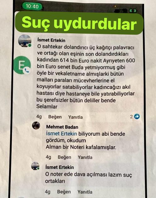 İddiaya göre, İsmet Ertekin, Ebubekir Kaynar’ı daha da zor durumda bırakmak için Emma Elmas’a baskı yaparak sahte davalar açtırmış ve adaleti yanıltmayı hedeflemiştir. Bu gelişmeler doğrultusunda, Ertekin’in yalnızca Türkiye’de değil, Almanya’da Offenbach Savcılığı tarafından yürütülen soruşturmalarda da suçlandığı bildirildi.